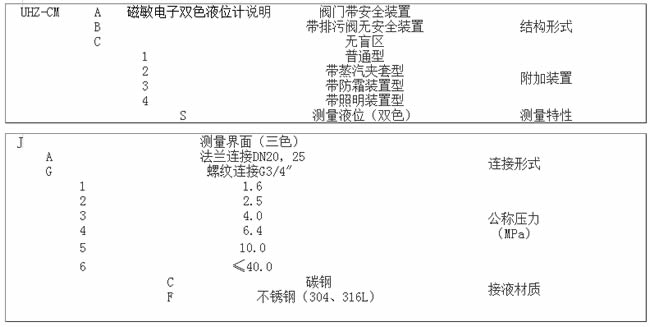 選磁敏電子雙色液位計型型譜: